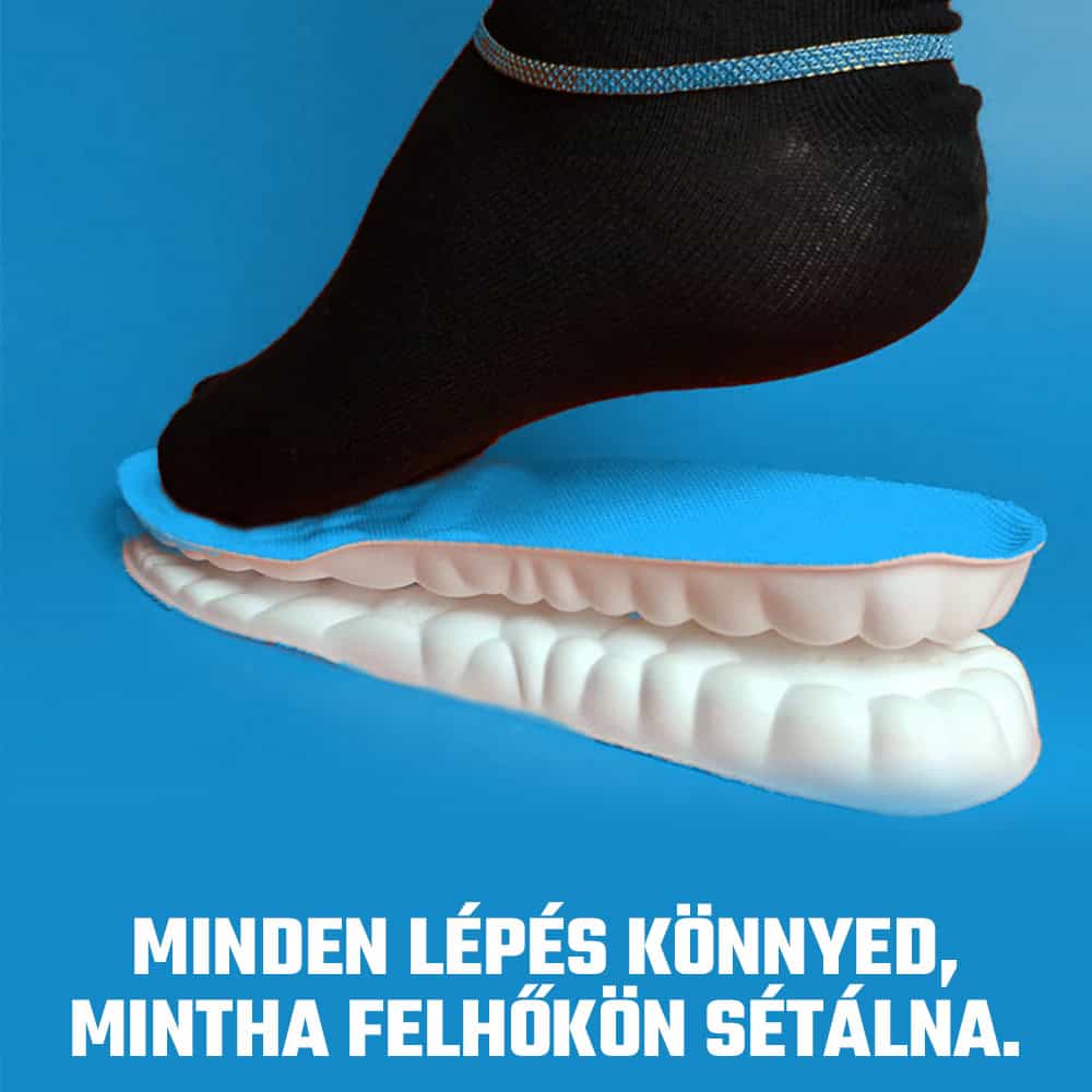 A talpbetét speciális kialakítása segít csökkenteni a talp-, sarok- és térdfájdalmat, így a mindennapi mozgás újra könnyeddé válik.